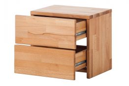Внутренние ящики комода занимают максимальное пространство каркаса. Так мы реализовали большую вместительность. Детский комодик компактный, но вместительный. Выдвижные ящики установлены на телескопических направляющих. Они выдерживают полную загрузку вещами. Ящик далеко выдвигается из каркаса, в него удобно складировать вещи. При этом рундук прочно стоит и не опрокидывается.